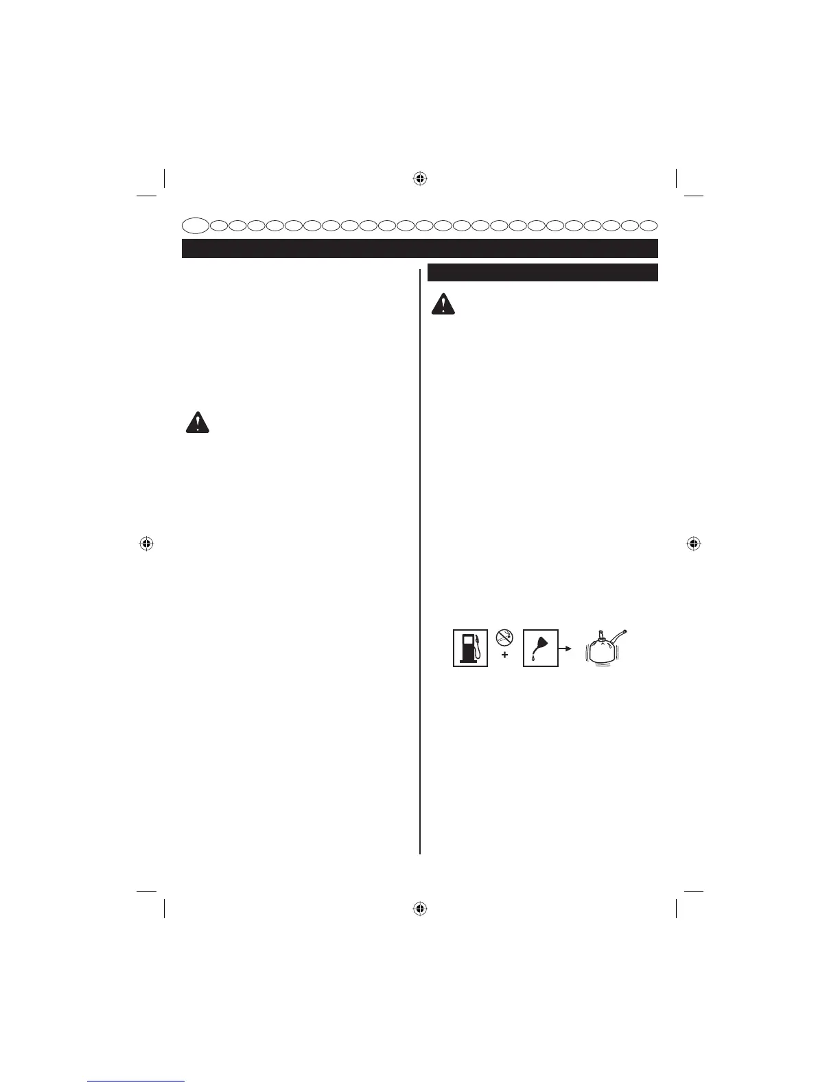 ■ Mélangez 2% d’huile de synthèse 2 temps dans