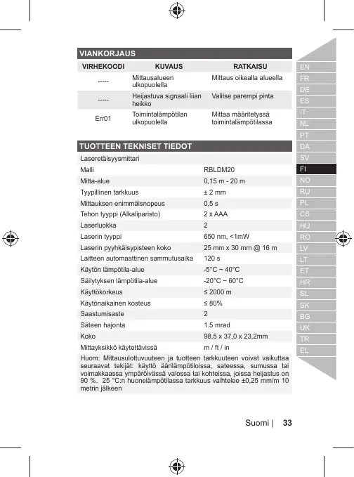 Mitta-alue 0,15 m - 20 m