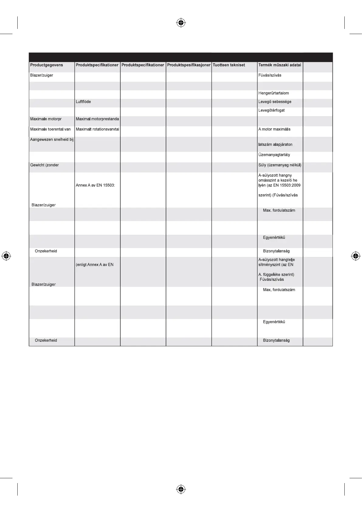 Motor in vrijloop Tomgångskörning Tomgang Tomgang Tyhjäkäynnillä Alapjárat