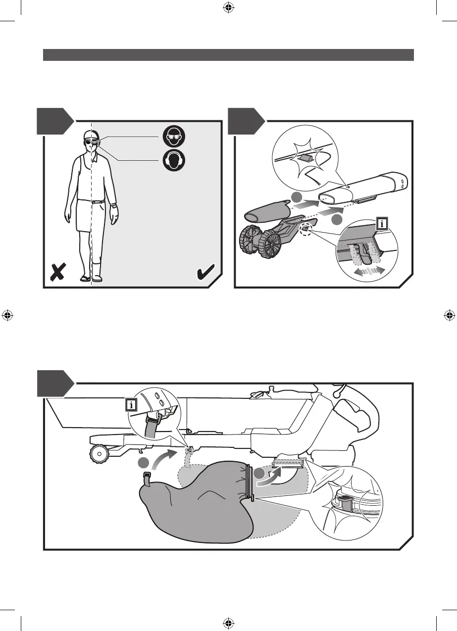Hook the vacuum bag to the lower blower tube. Guide the vacuum bag opening over the bag adaptor, then