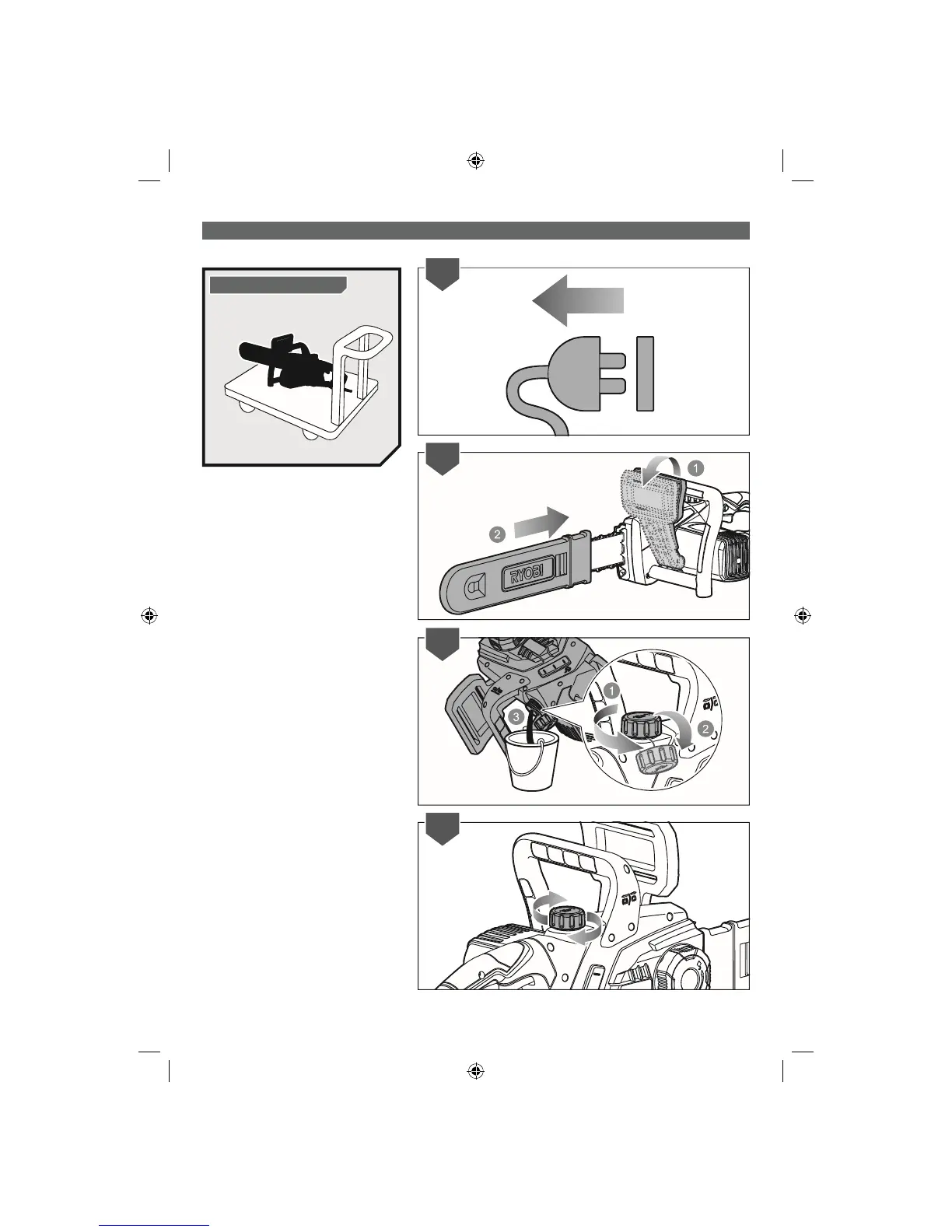 3. Drain all bar and chain lubricant from