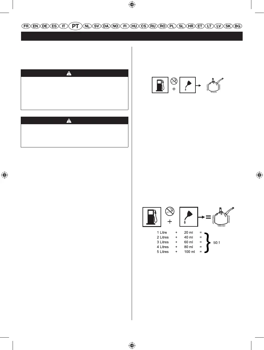 Inclui a pré-mistura de gasolina/óleo para uso em