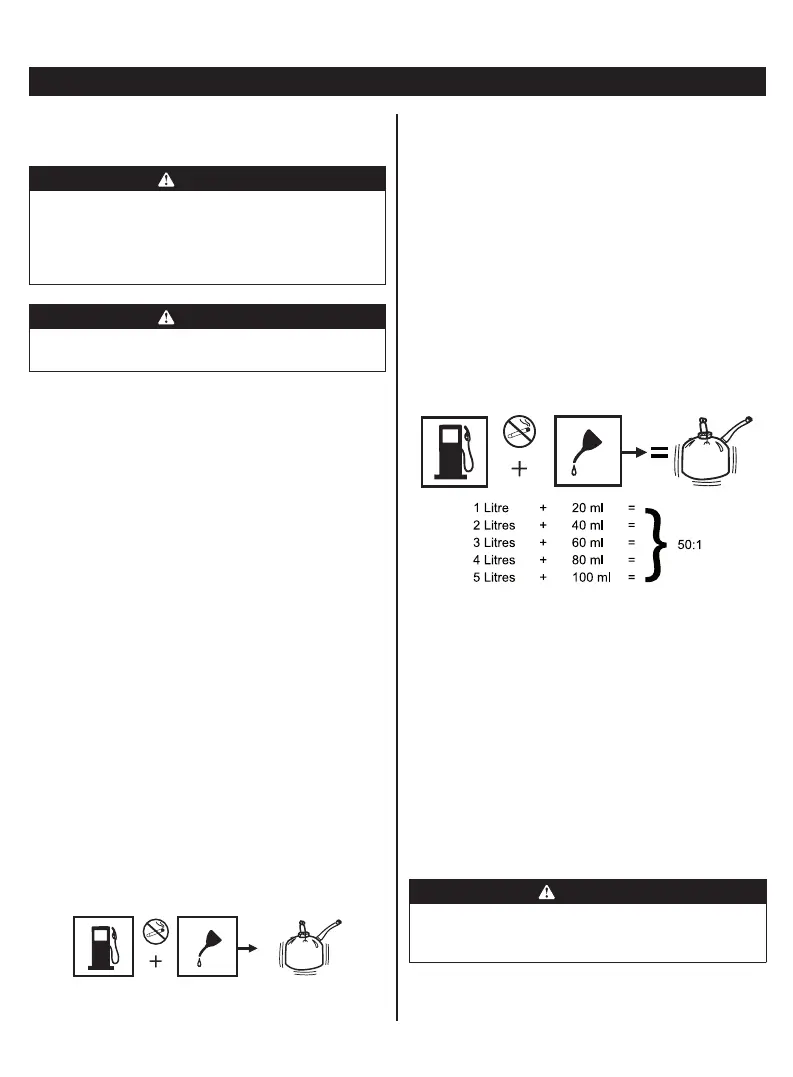 ■ Mix 2% lubricant into the petrol. This is a 50:1 ratio.