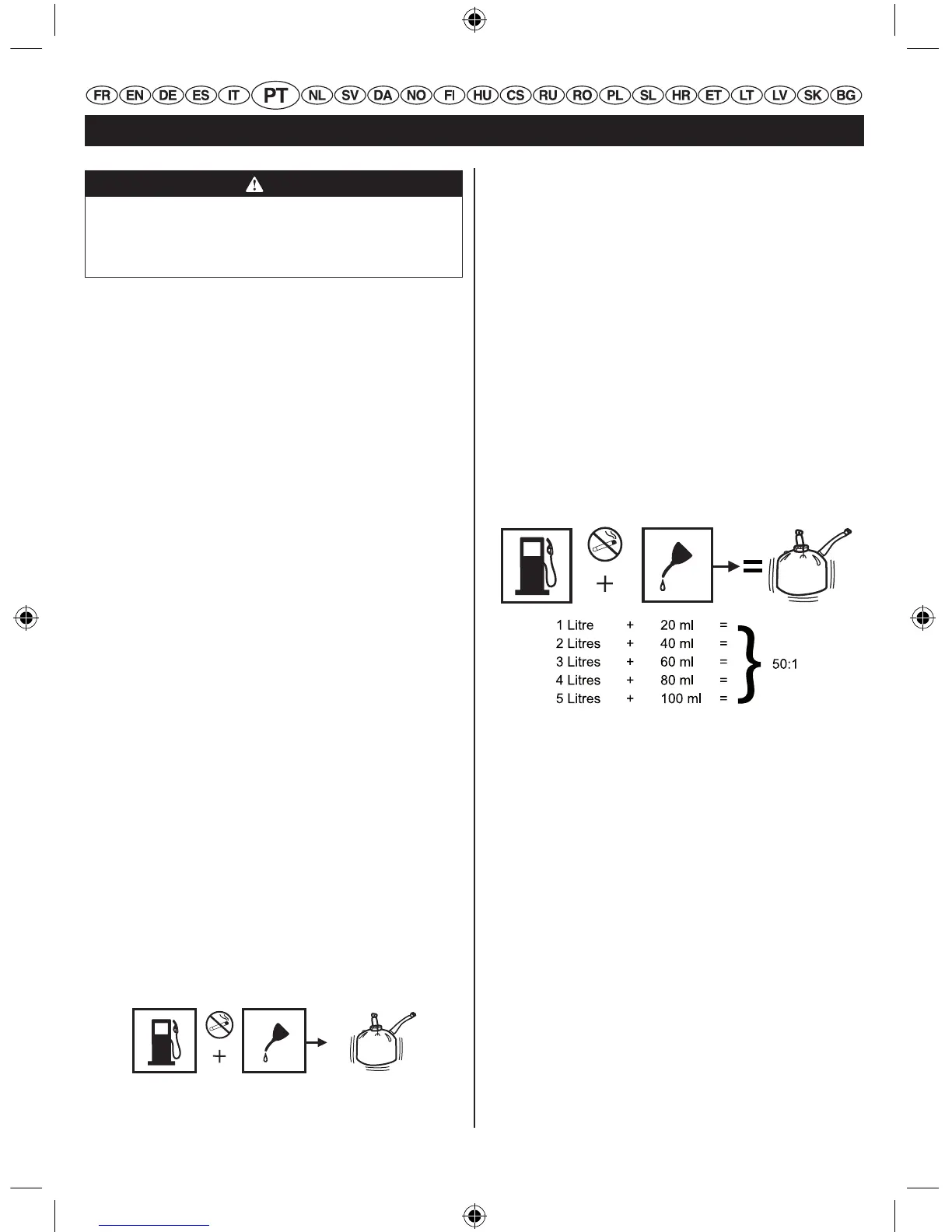 ■ Misture 2% de óleo na gasolina. Esta é uma razão de