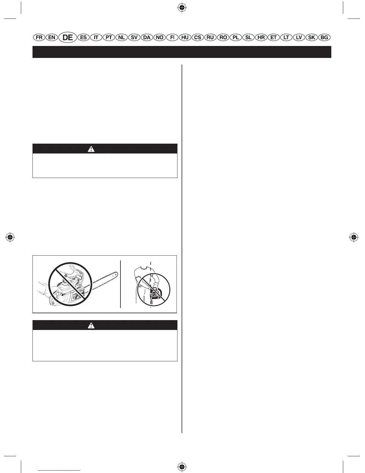 ■ Die Säge immer fest mit beiden Händen halten. Immer