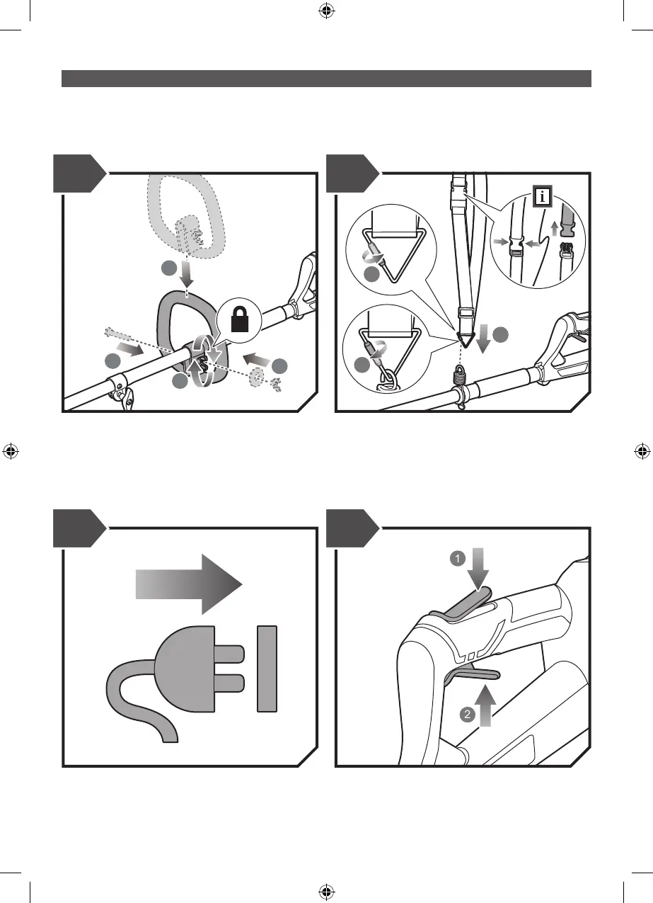 Press the lock-out button (1) and then squeeze the throttle trigger