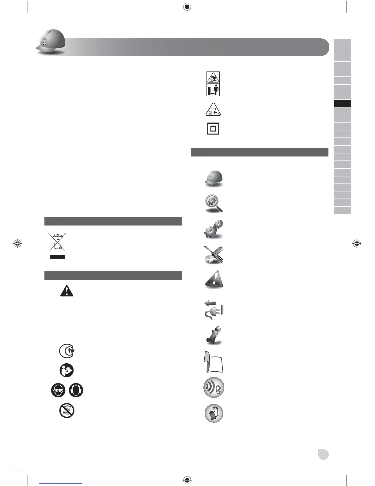 Bär skydd för ögon och öron.