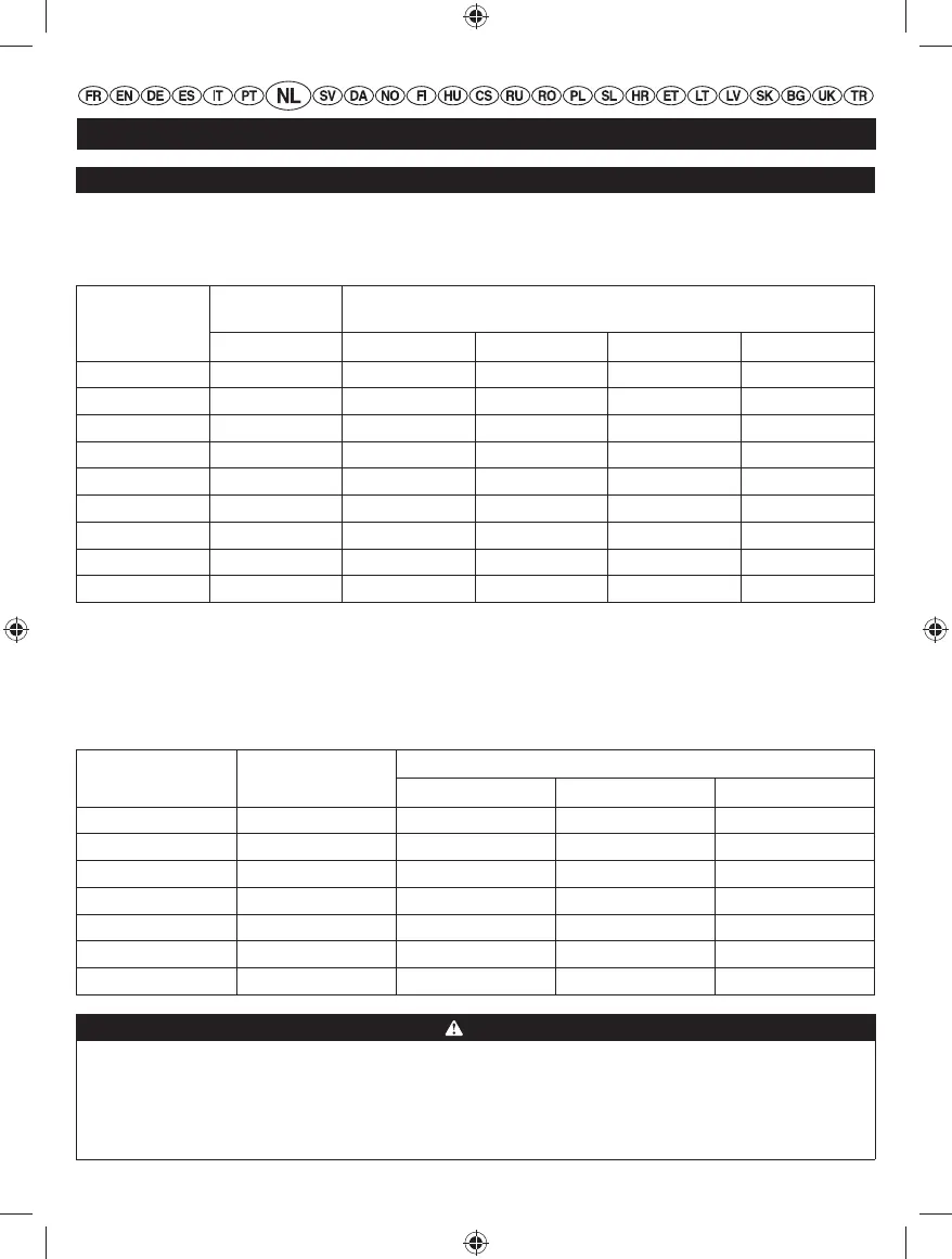 Controleer altijd de specifi caties van het gereedschap of hulpmiddel dat u wilt gebruiken en vergelijk dit met het nominale