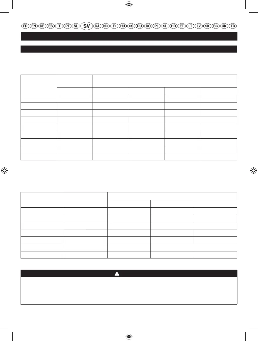 Se tabellen nedan för att säkerställa kabelstorleken på förlängningssladdarna du använder är i stånd att bära belastning.