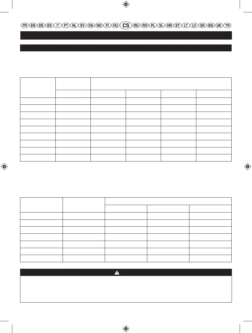 V níže uvedené tabulce zkontrolujte, zda velikost prodlužovacího kabelu, který používáte, odpovídá požadovanému