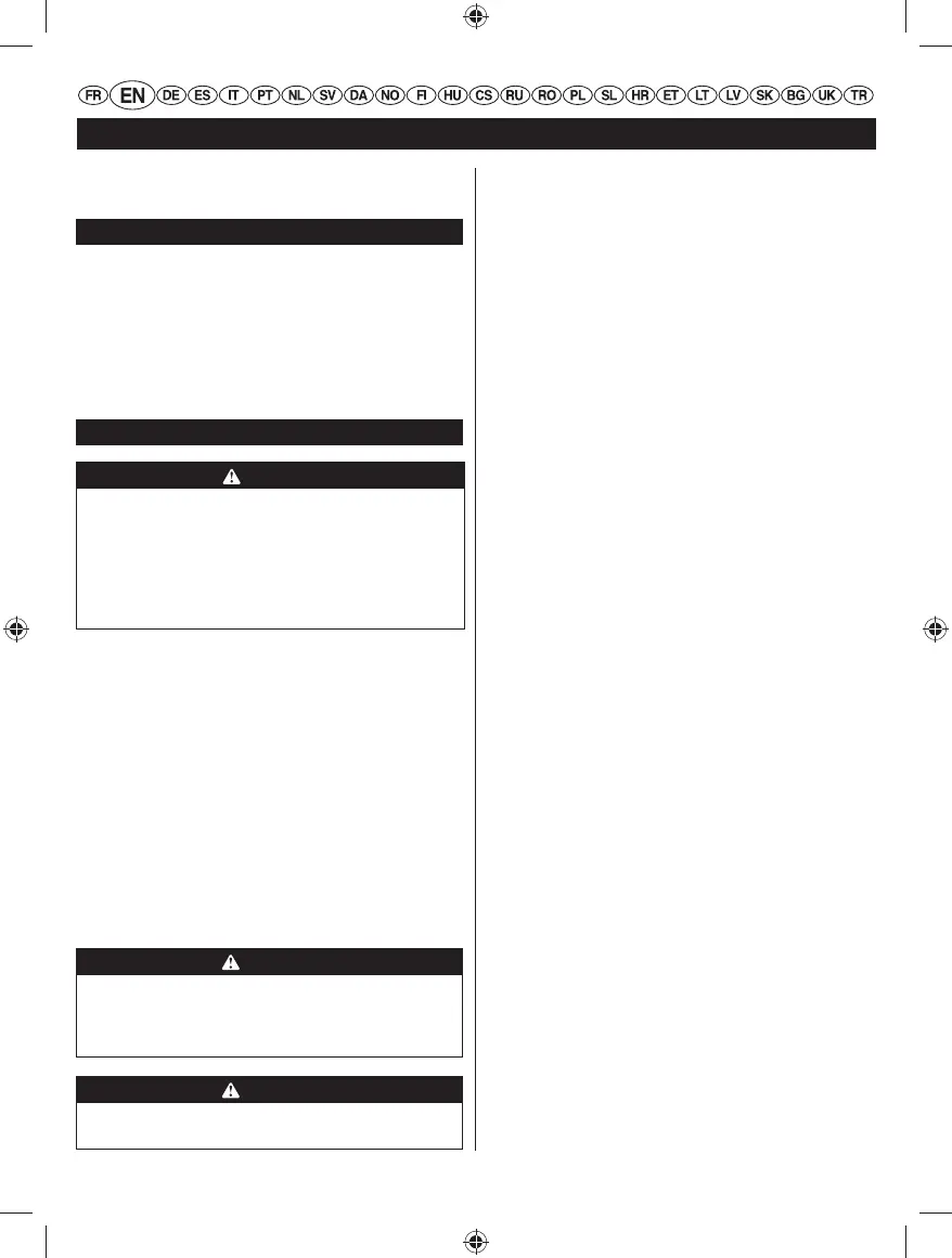 ■ Wear sturdy and dry shoes or boots. Do not operate