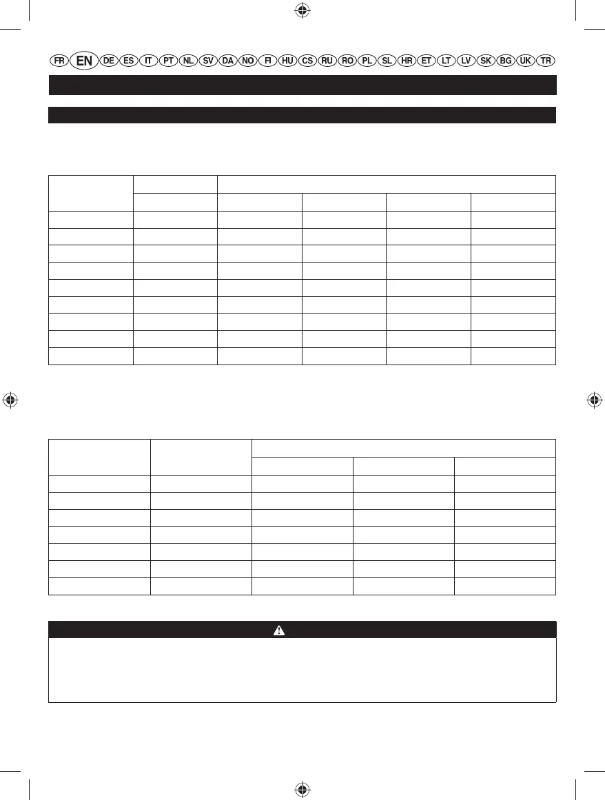 Refer to the table below to ensure the cable size of the extension cords you use are capable of carrying the required load.