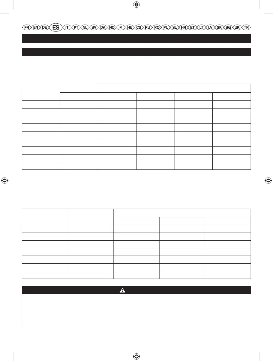 Consulte la tabla mostrada abajo para asegurarse de que el calibre de los cordones de extensión que utilice pueda con