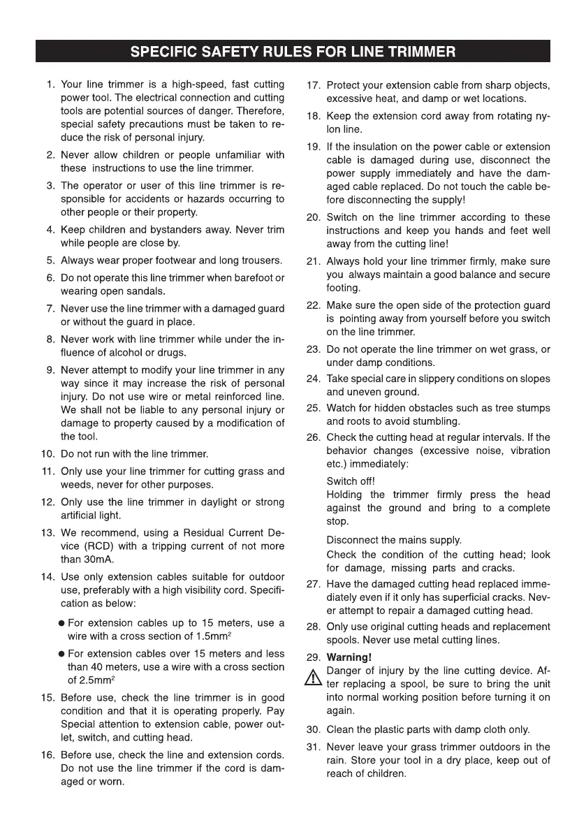 Ryobi RLT-710 - Specific Safety Rules for Line Trimmer; General Trimmer Safety Practices; Safe Usage and Pre-Use Checks; Hazard Avoidance and Protection