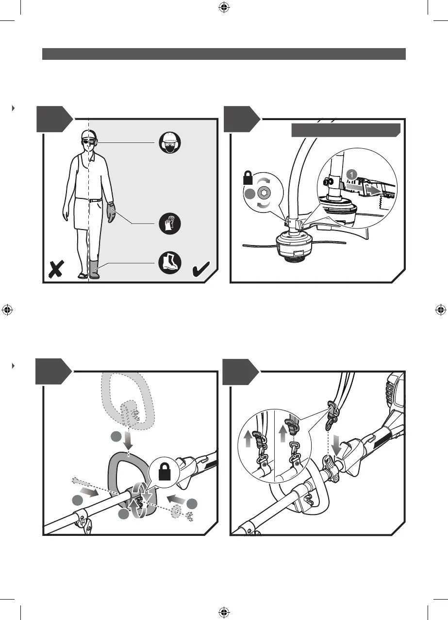 Attach the D-handle. Attach the harness..
