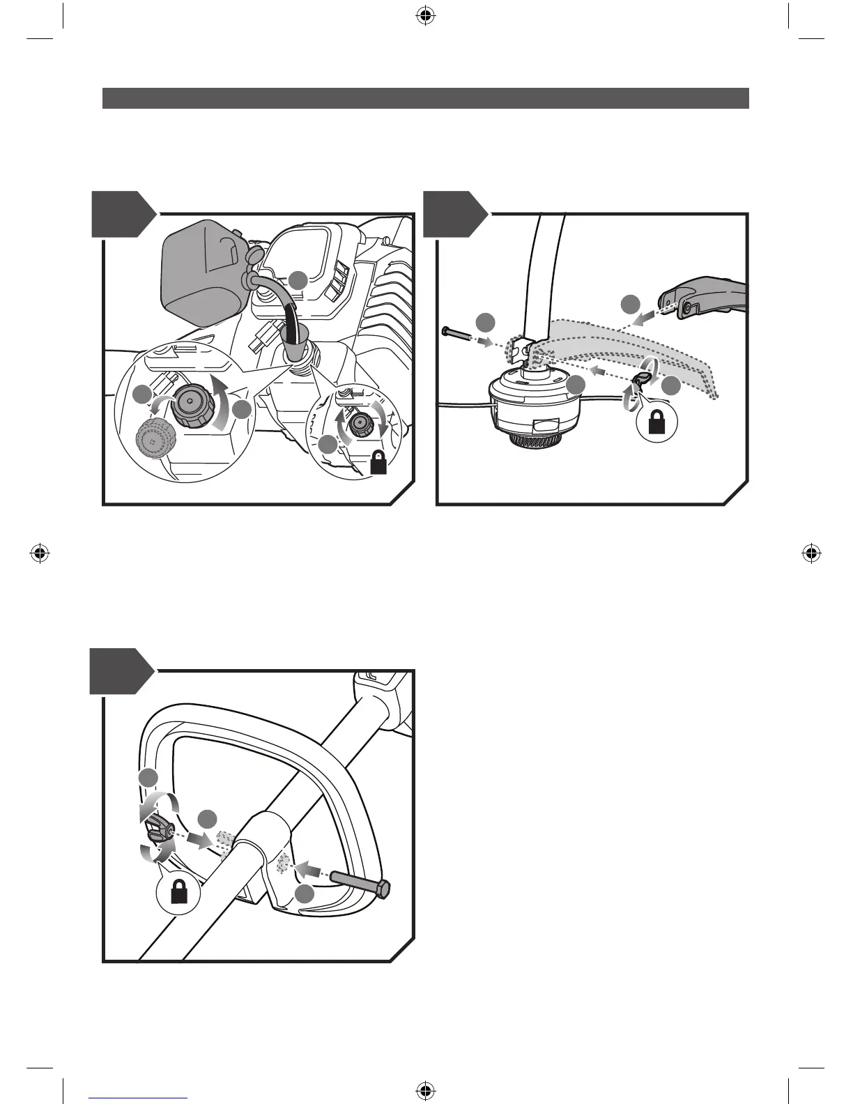 Secure the screw and wing nut of the D-handle to the upper shaft.