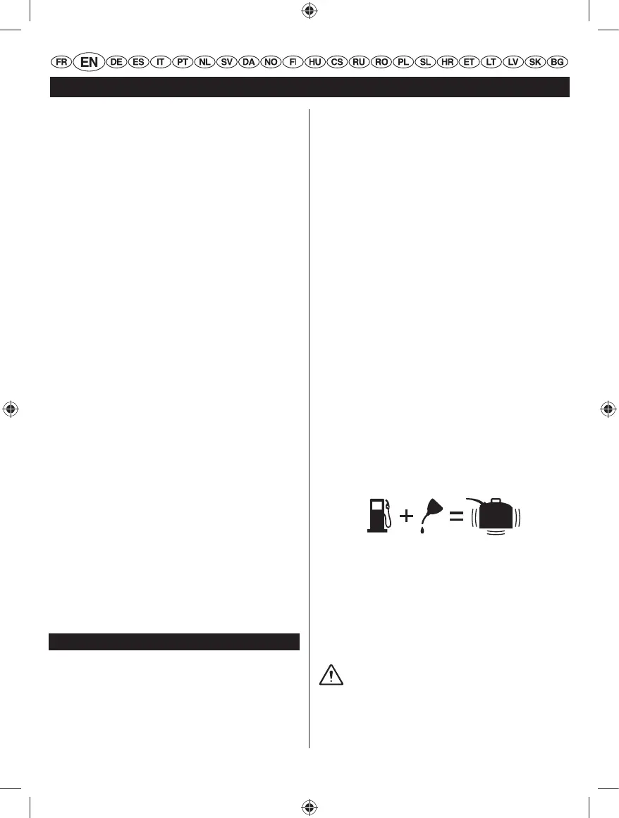 ■ Mix 2% full synthetic 2-stroke lubricant into the petrol.