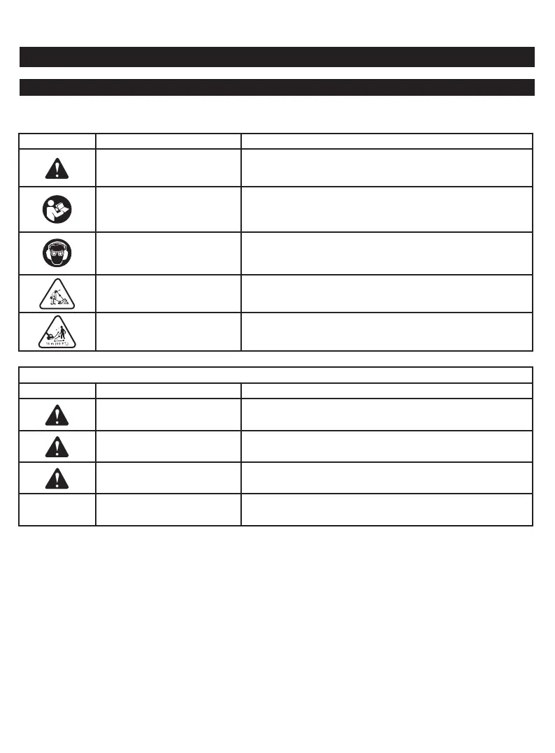 The following symbols are located on labels on the attachment shaft. Please study them and learn their meaning. Proper