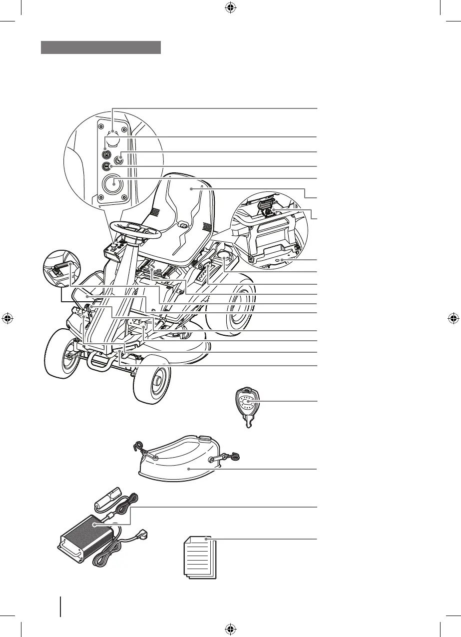 Ryobi RM300E - RM300 e Model Overview; Control Panel and Steering Components; Seating and Mower Operation Controls