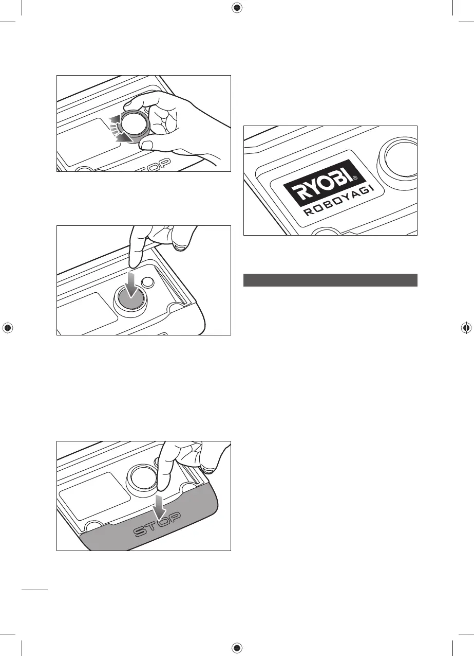 mygtuką, kol ekrane pasirodys „RYOBI“ logotipas.