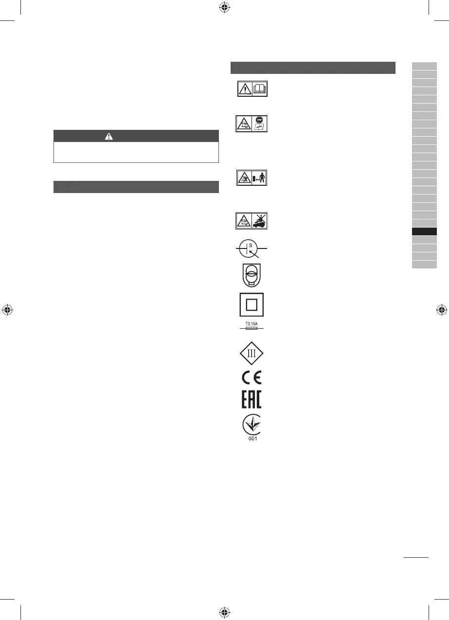 nostrādā un nekavējoties aptur riteņus un asmeņus, ja