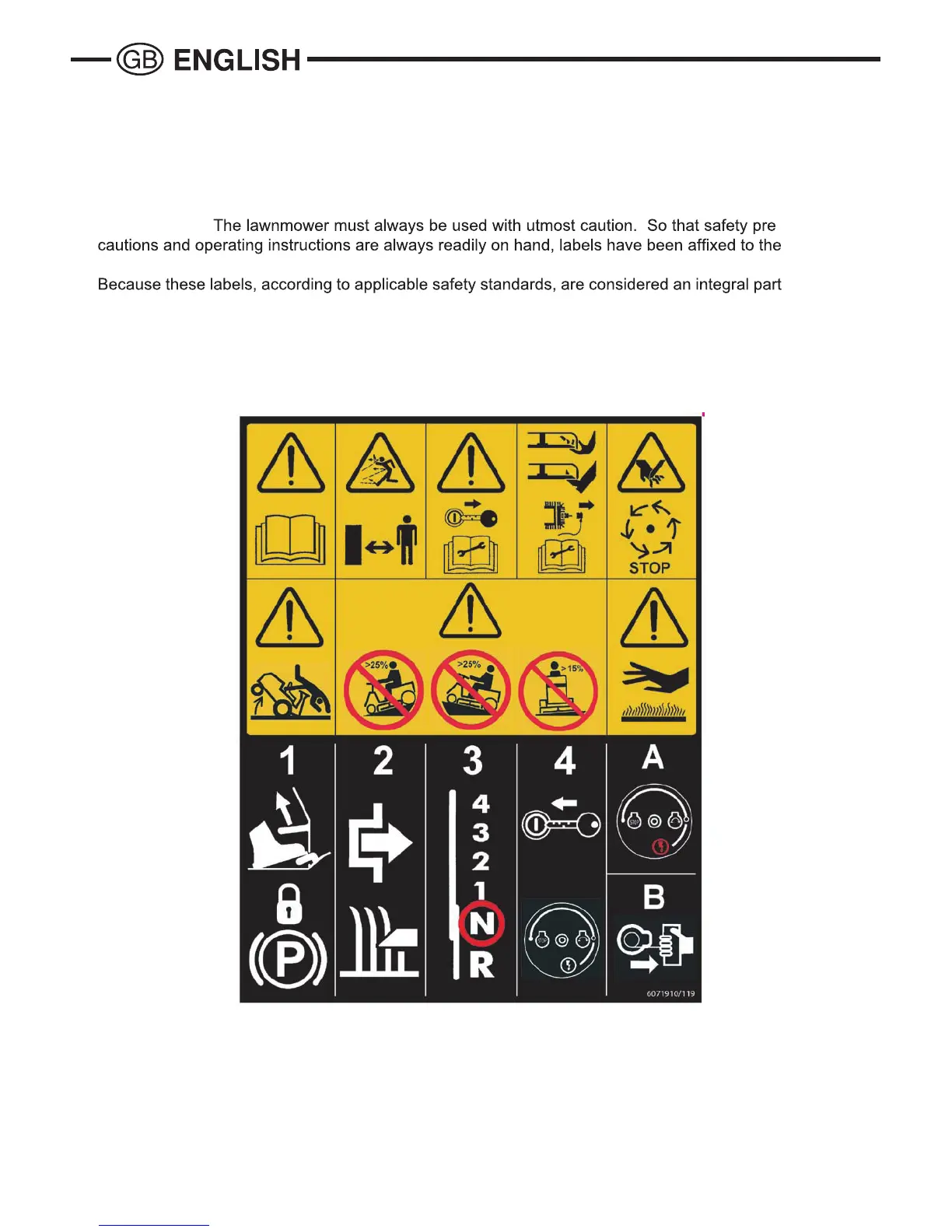 machine showing pictographs illustrating the main operating precautions