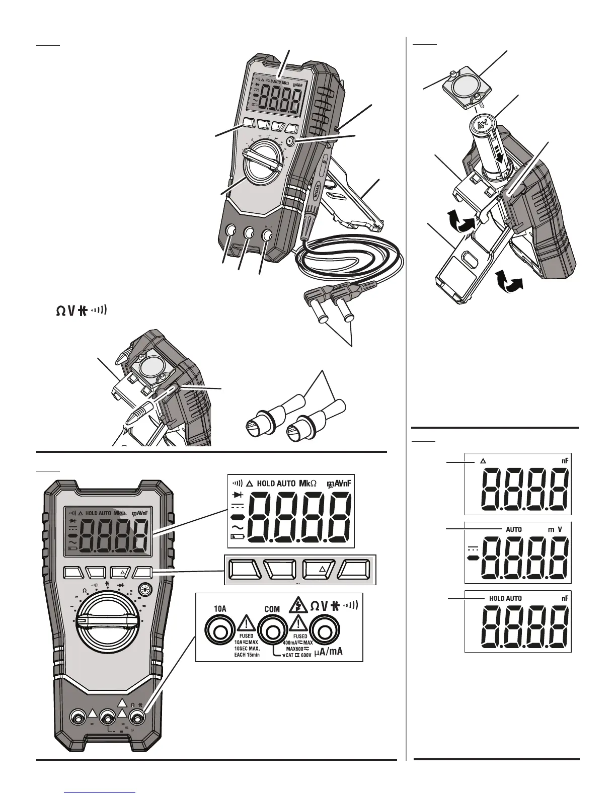 A - Digital LCD display (écran ACL numérique, pantalla digital