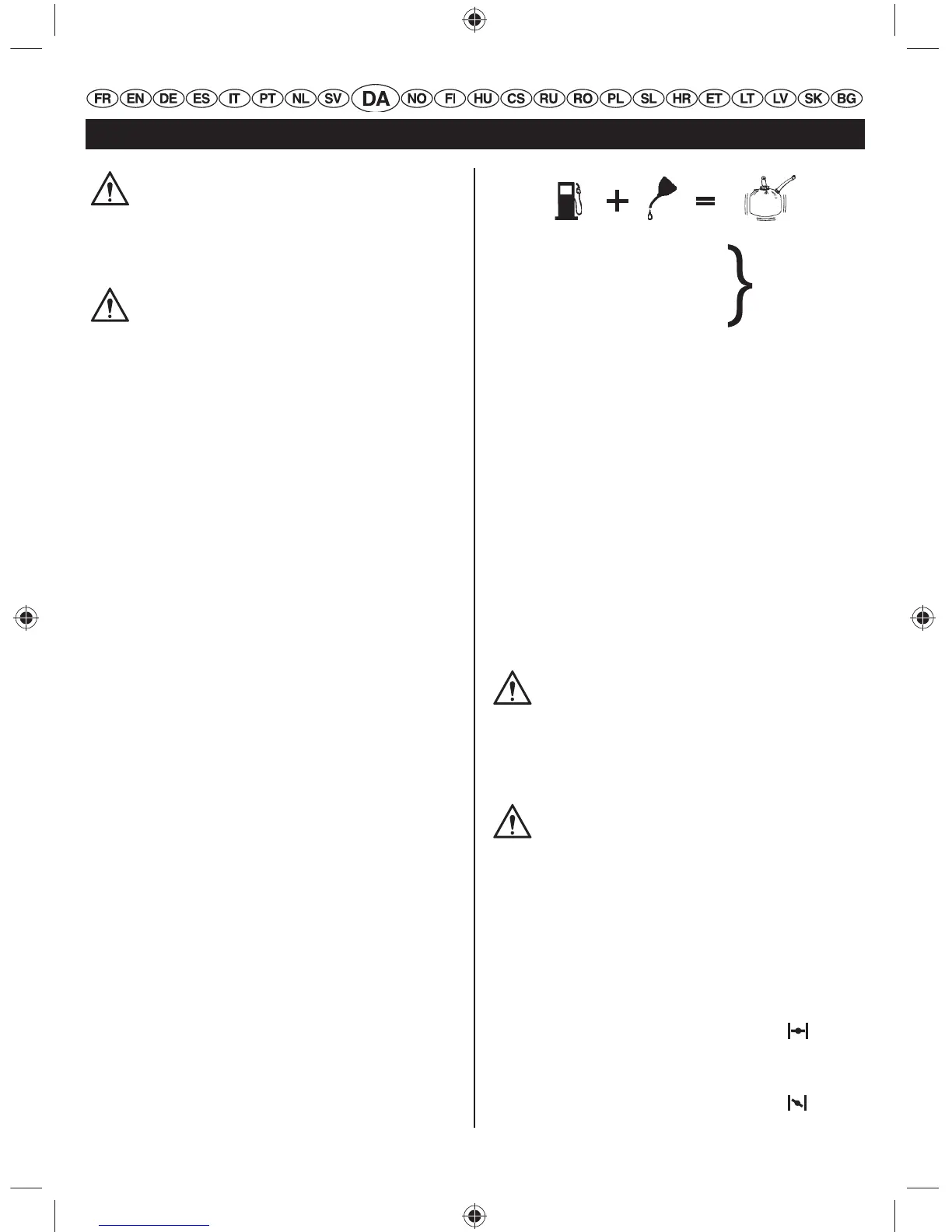 Ŷ Bland og påfyld altid brændstof udendørs og aldrig i