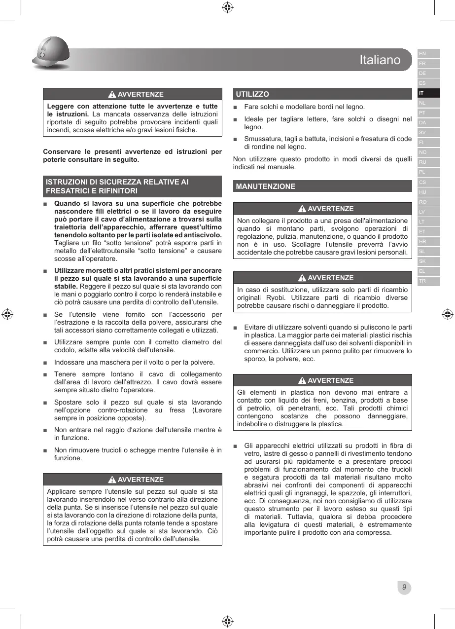 originali Ryobi. Utilizzare parti di ricambio diverse