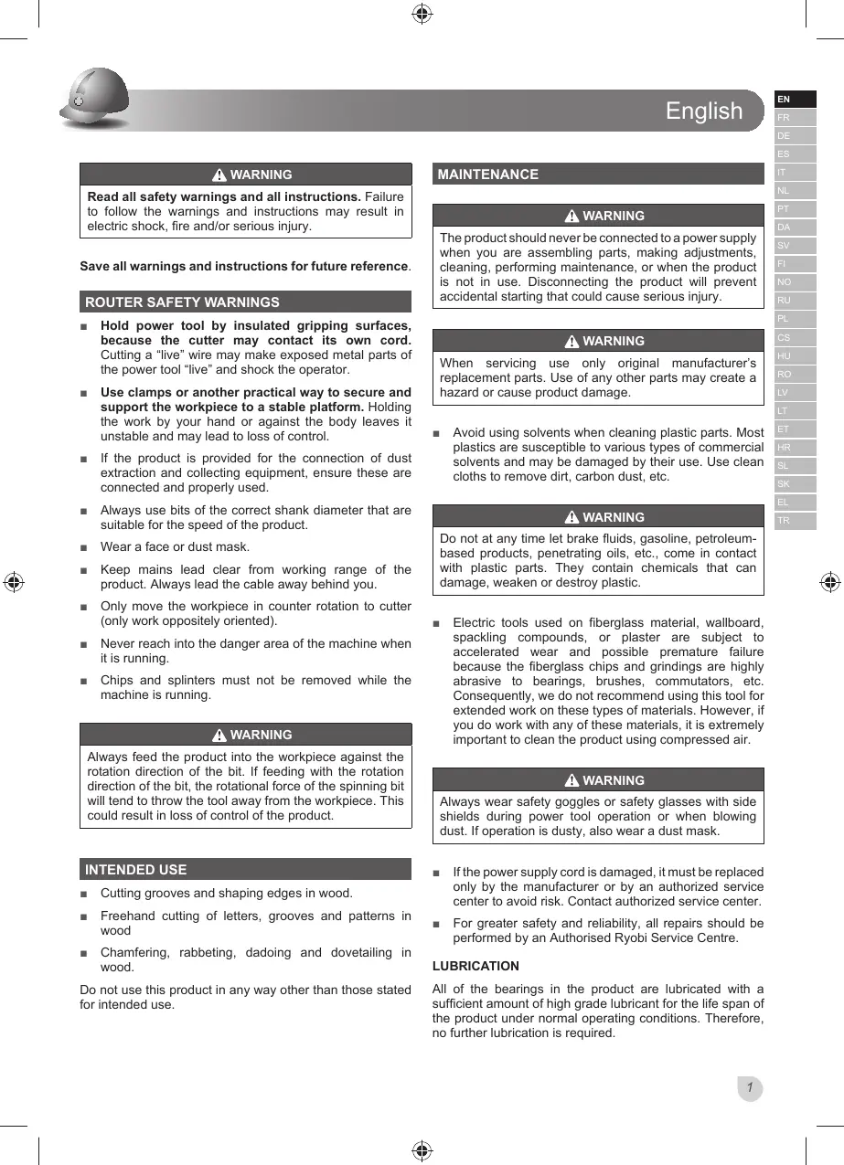 ROUTER SAFETY WARNINGS