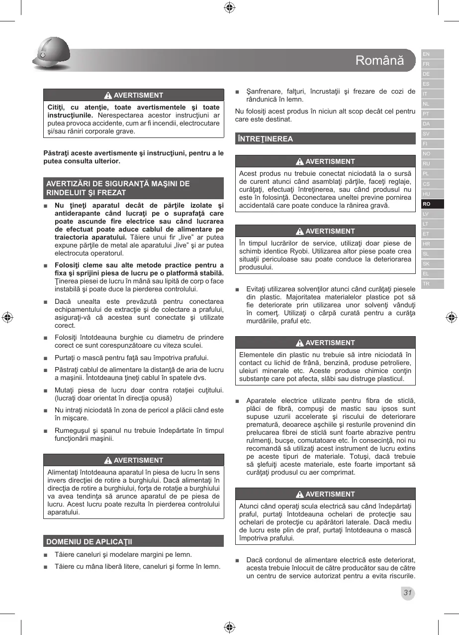 AVERTIZĂRI DE SIGURANŢĂ MAŞINI DE