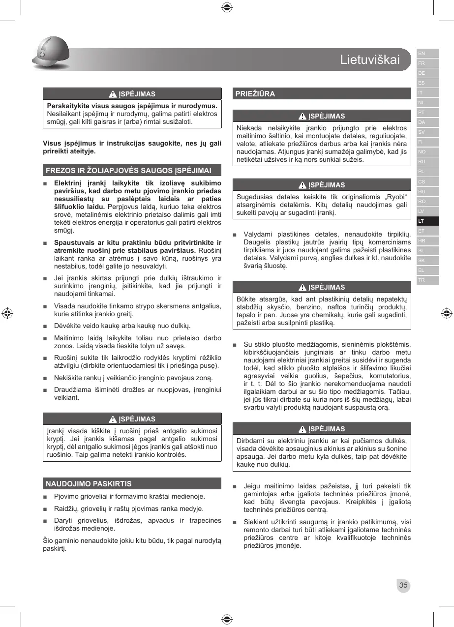 FREZOS IR ŽOLIAPJOVĖS SAUGOS ĮSPĖJIMAI