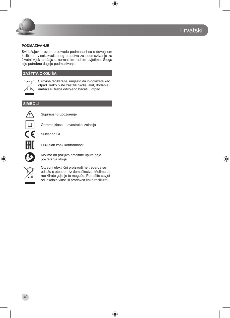 Svi ležajevi u ovom proizvodu podmazani su s dovoljnom