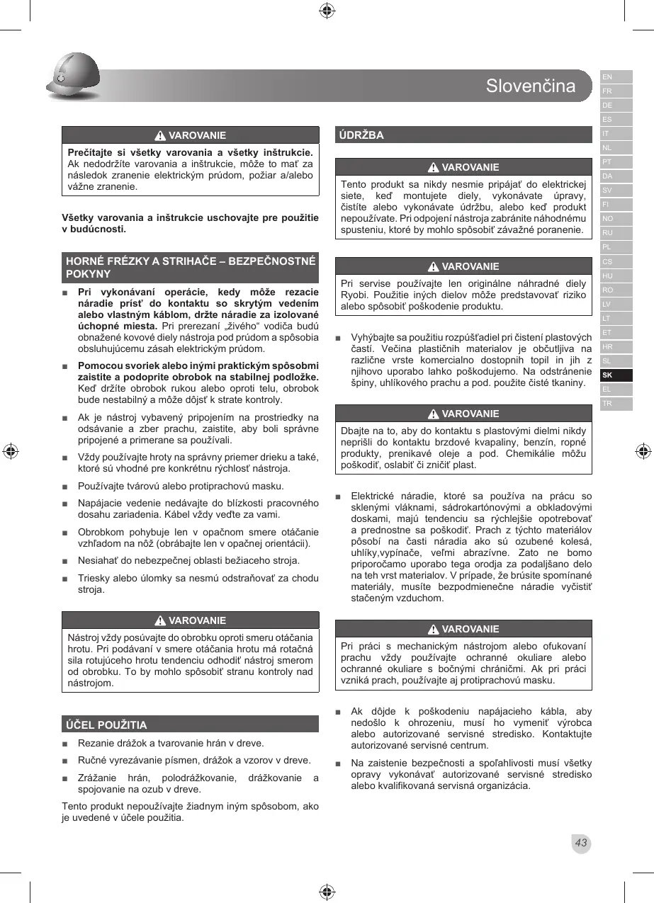 Ryobi. Použitie iných dielov môže predstavovať riziko