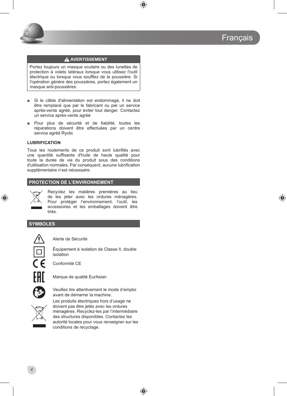Tous les roulements de ce produit sont lubrifi és avec