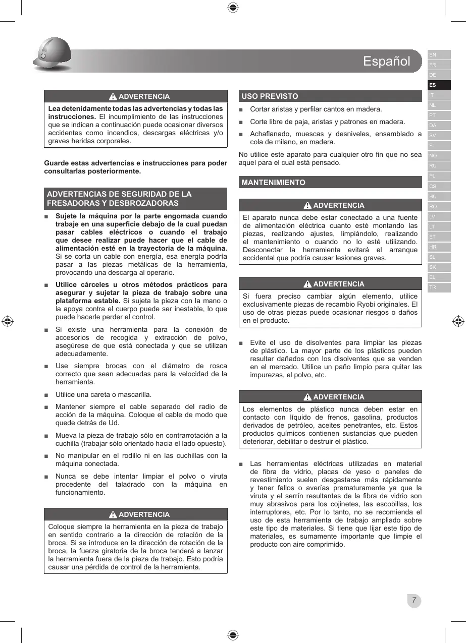 exclusivamente piezas de recambio Ryobi originales. El