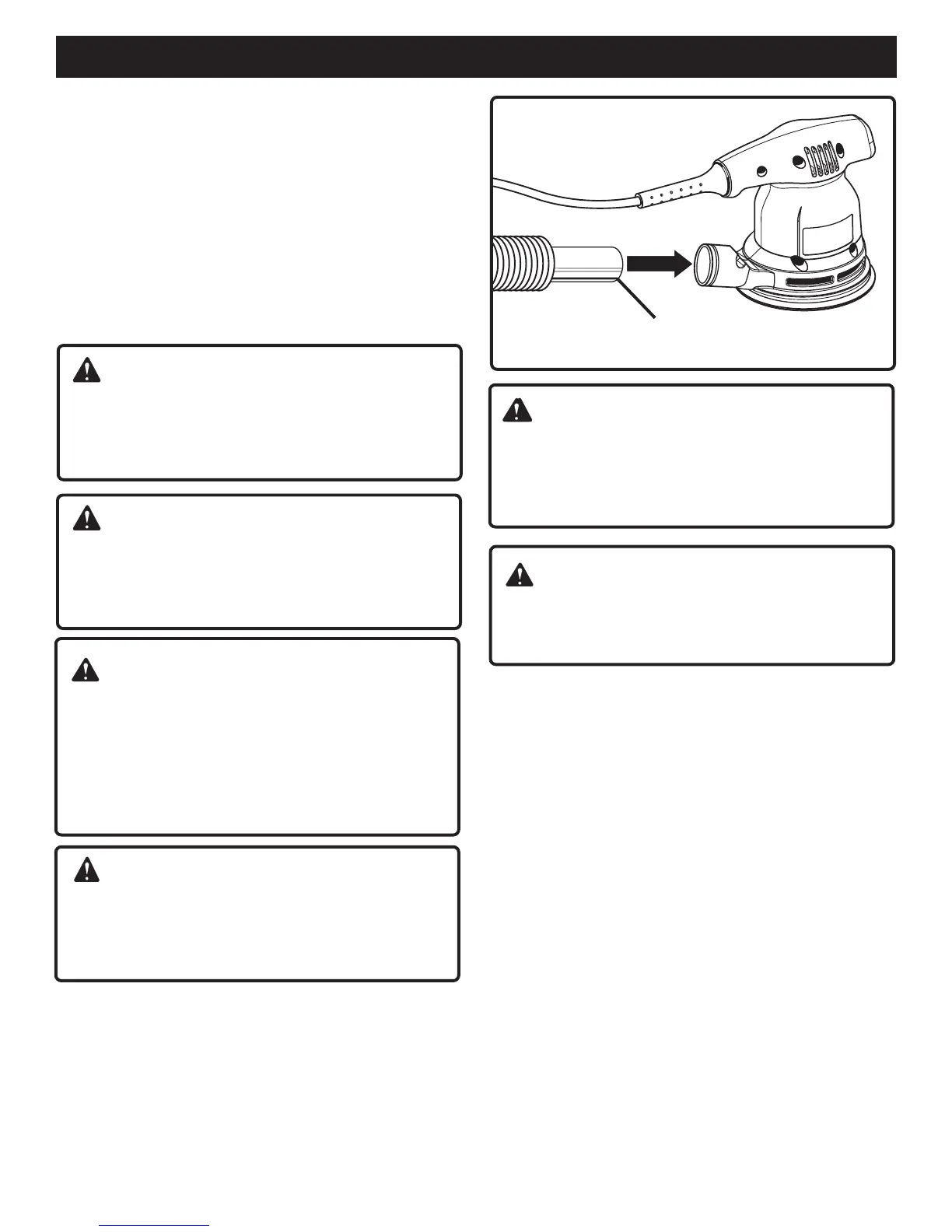 dust bag back on sander. Failure to do so can cause