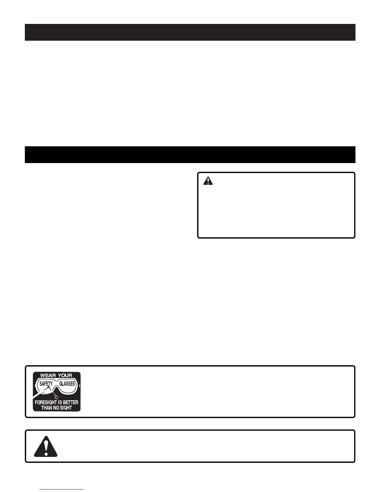The operation of any power tool can result in foreign objects being thrown into your eyes, which