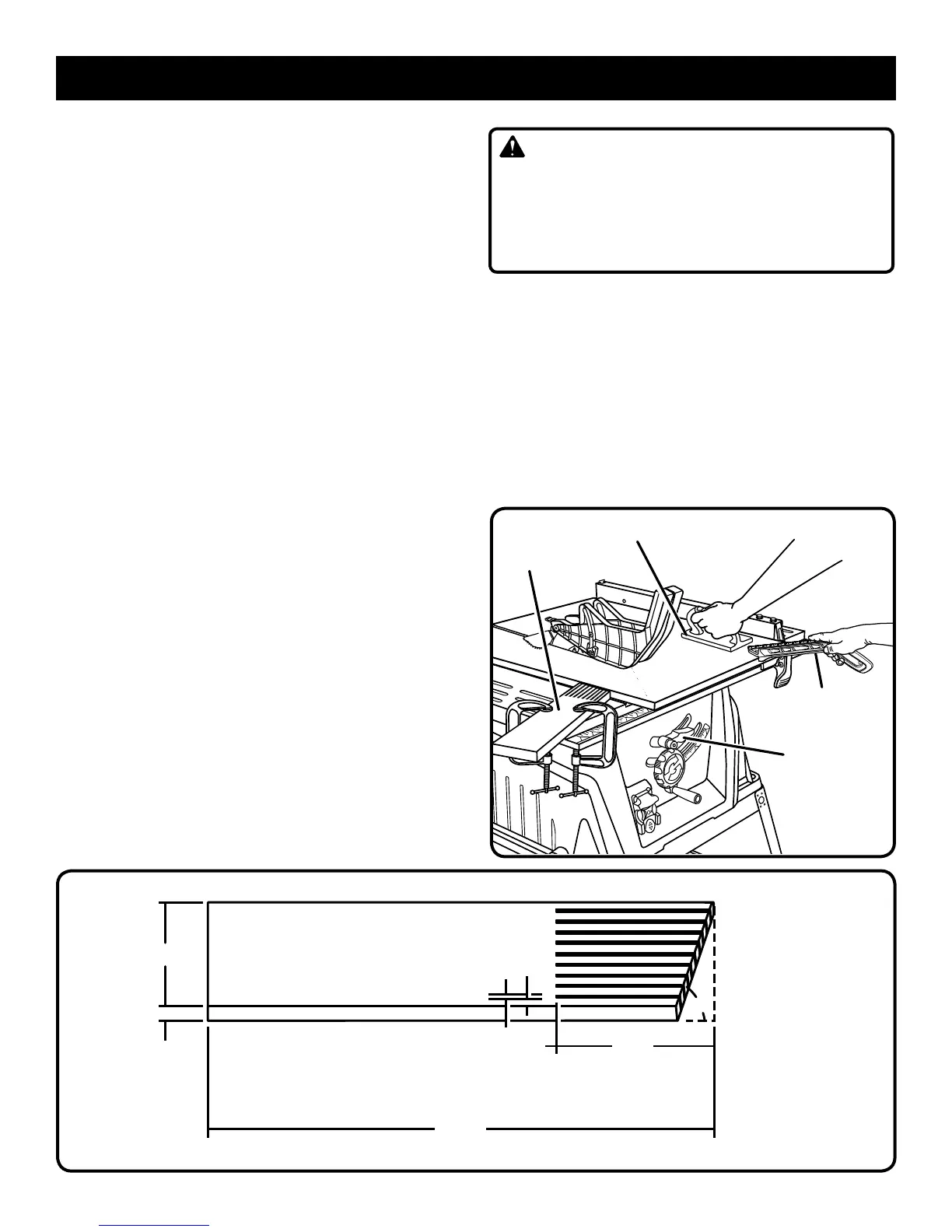 blade in the saw kerf. Failure to heed this warning can