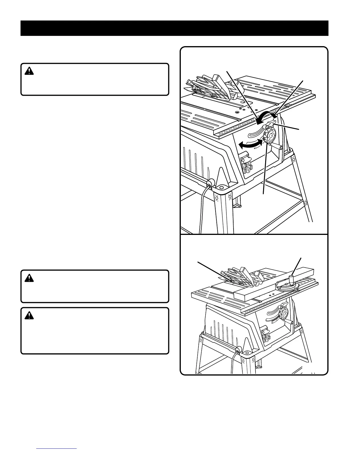 VIEWED FROM THE FRONT, BELOW THE TABLE SAW