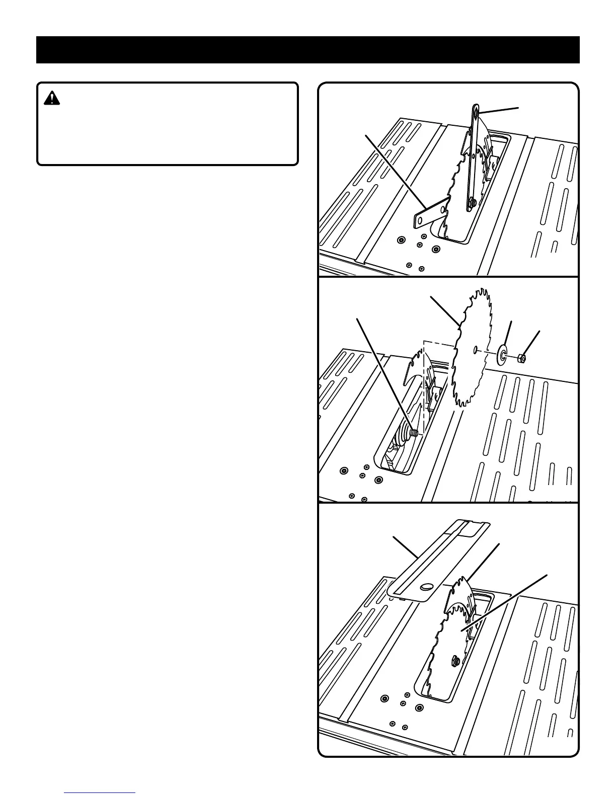 the blade and that all items are snug against the arbor