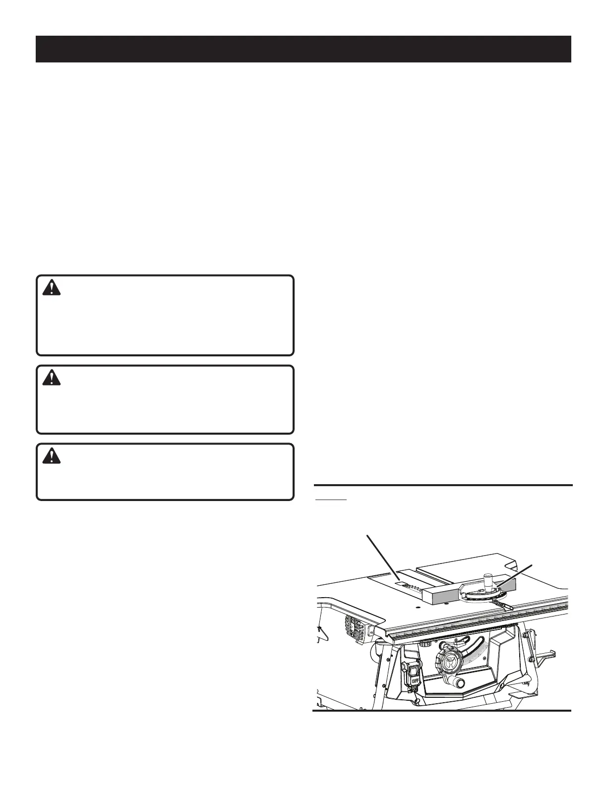 Remove the blade guard, throat plate, and riving knife.