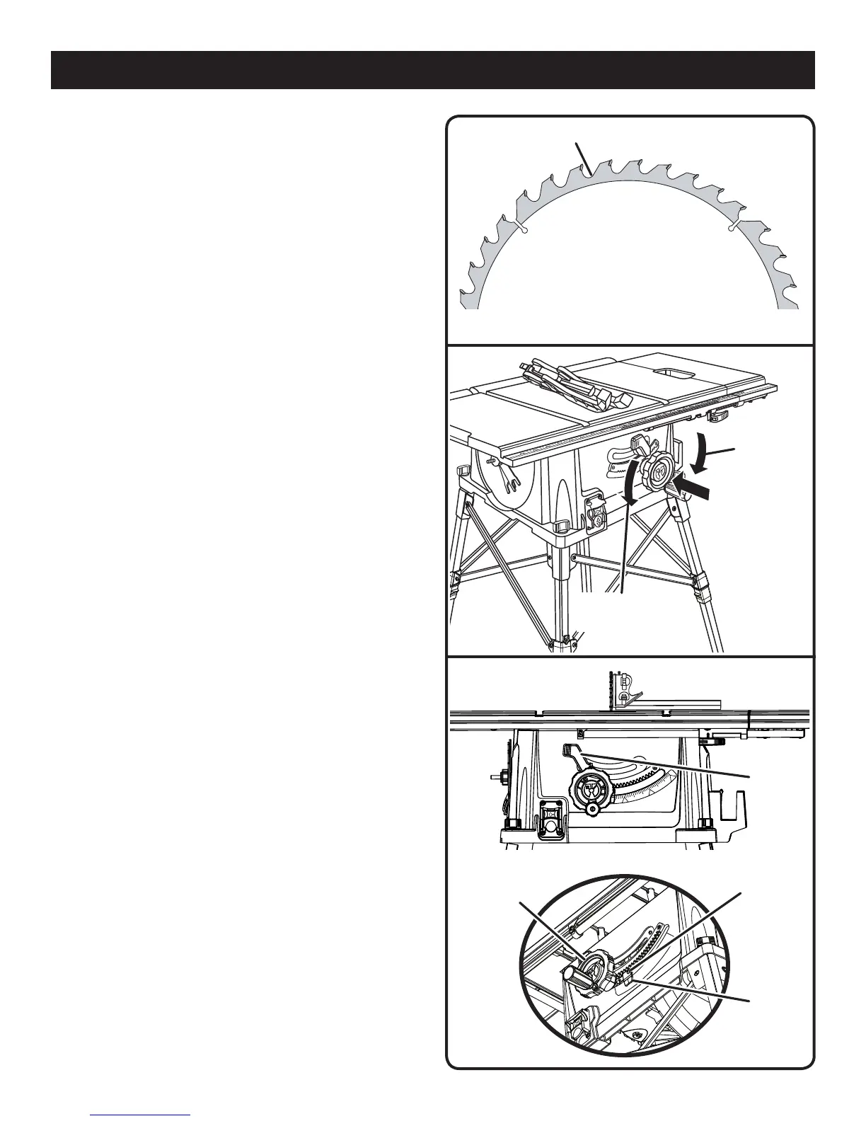 Raise the blade by turning the height/bevel adjusting