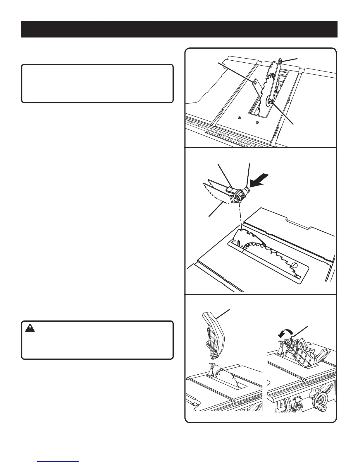 to the left, see figure 29. Raise the saw blade to its full