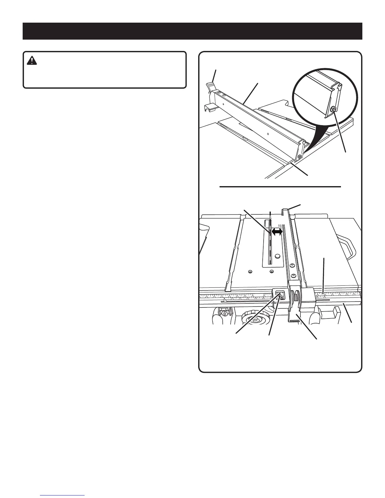 NOTE: The rip fence must be secure when the locking