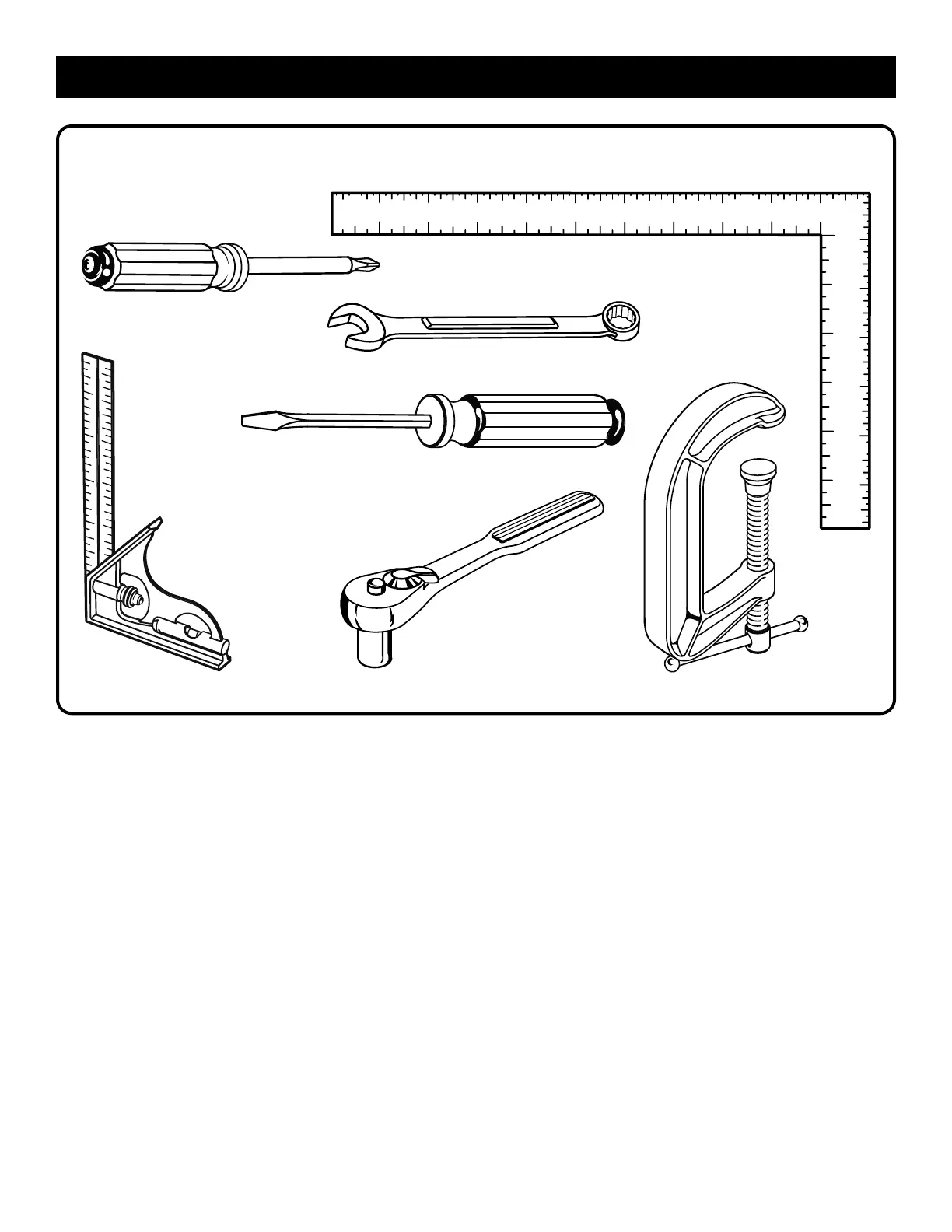 The following tools (not included or drawn to scale) are needed for assembly and making adjustments:
