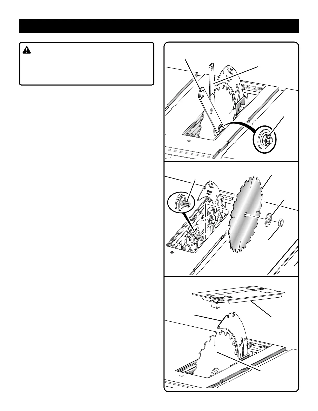 the blade and that all items are snug against the arbor