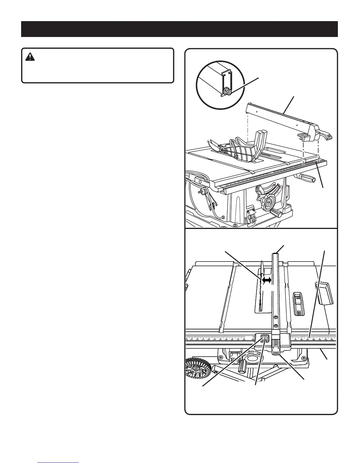 NOTE: The rip fence must be secure when the locking