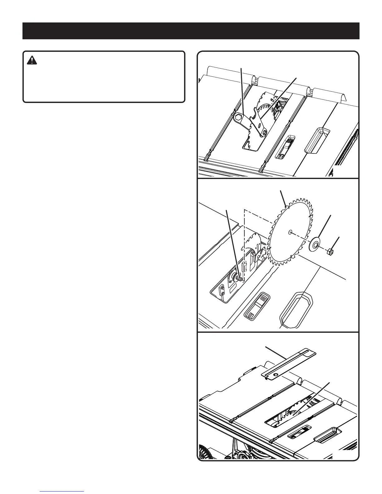the arbor housing. Make sure the blade nut is securely