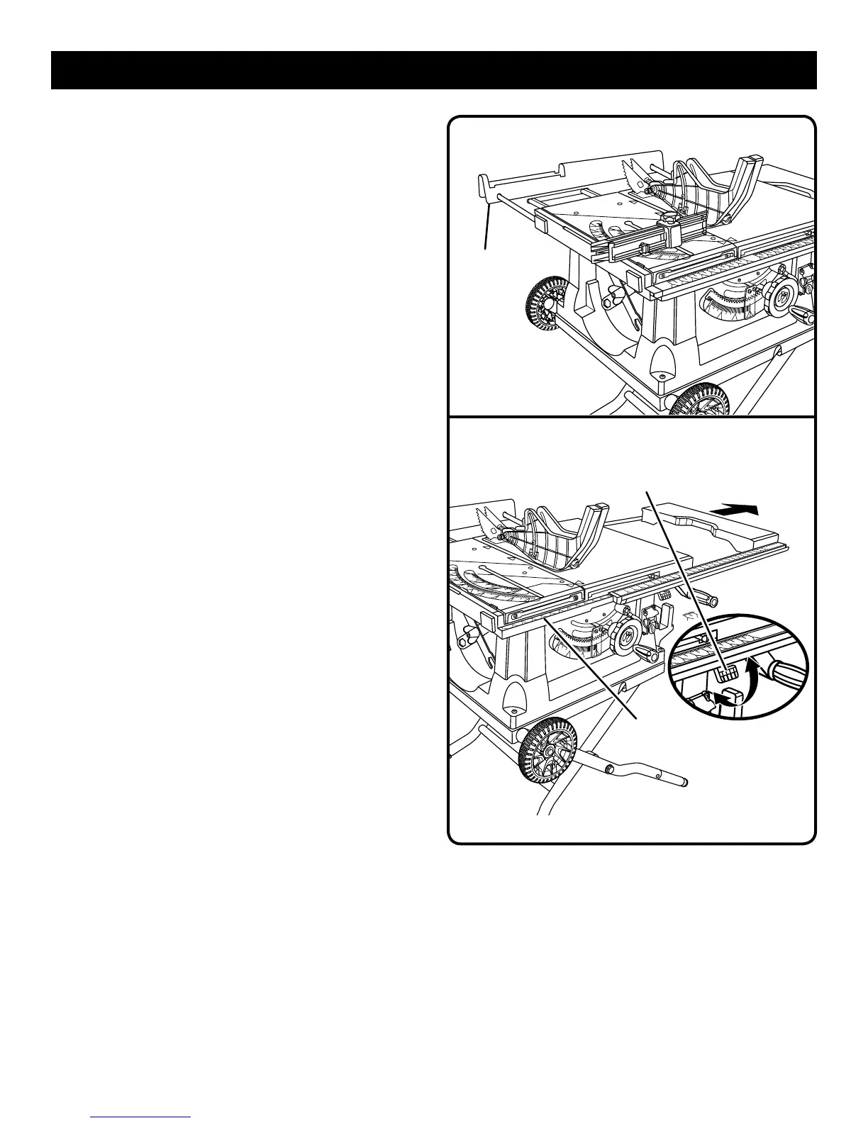 Push the table extension lever beneath the saw table